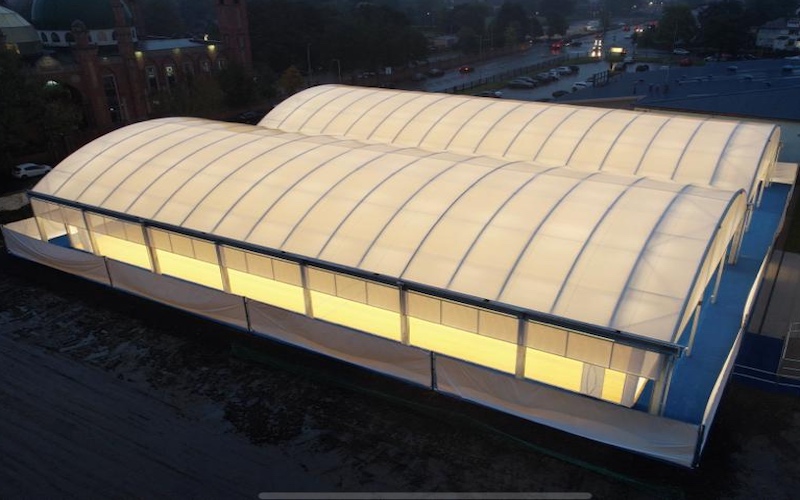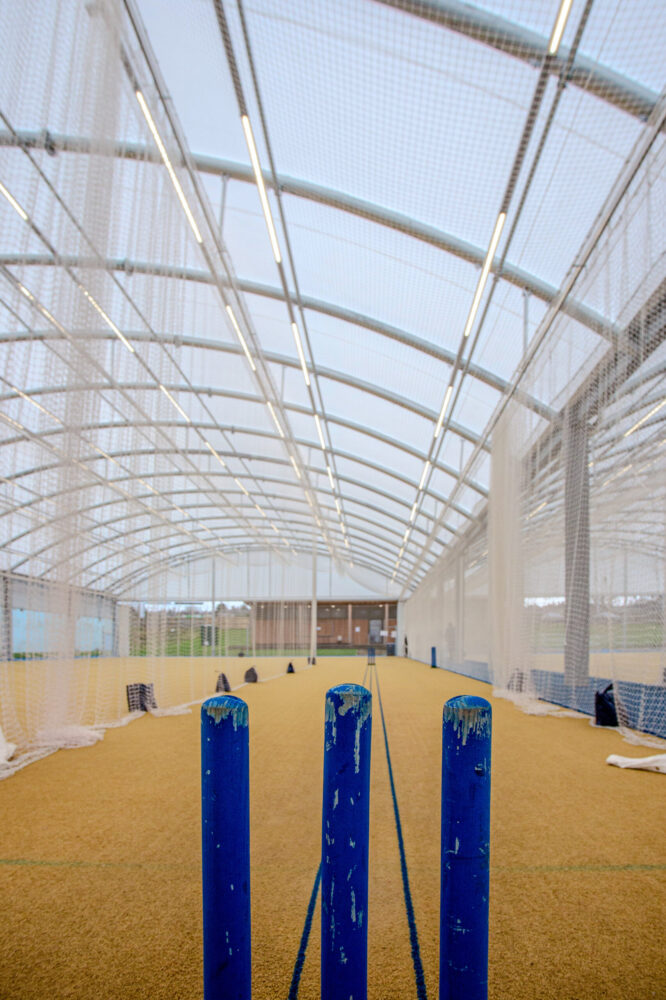 The domes accommodate cricket lanes that can be used for practice and match play in a covered environment. These domes blend the outdoor and indoor playing environments at a lower cost per square meter than a new sports hall.